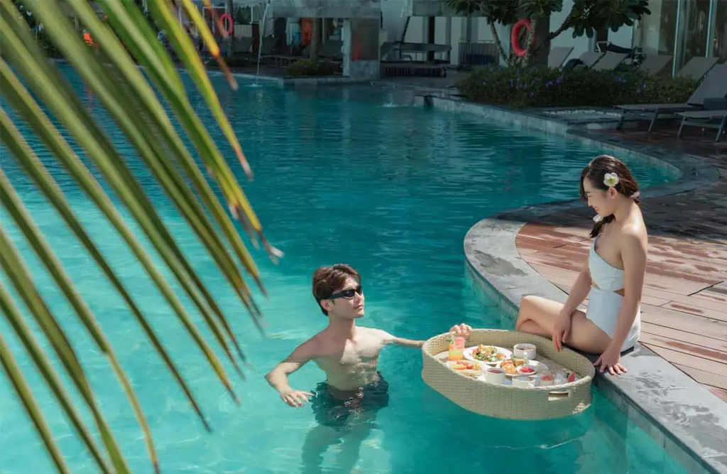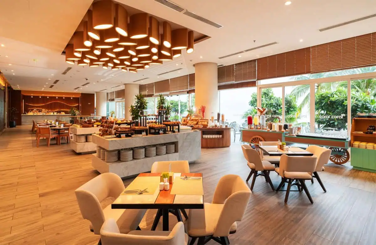 Ngoài ra, tại Lobby Lounge sẽ phục vụ tiệc trà chiều. Pool Bar hoặc Cocoon Terrace Cafe ngoài trời thoáng đãng – sẽ là lựa chọn hoàn hảo để dùng bữa bên ly cocktail ngắm cảnh hoàng hôn trên biển. Bar phục vụ các món đồ uống tốt cho sức khỏe, thức ăn nhẹ, bánh mì, salad và món tráng miệng trong bầu không khí ấm cúng và sang trọng.