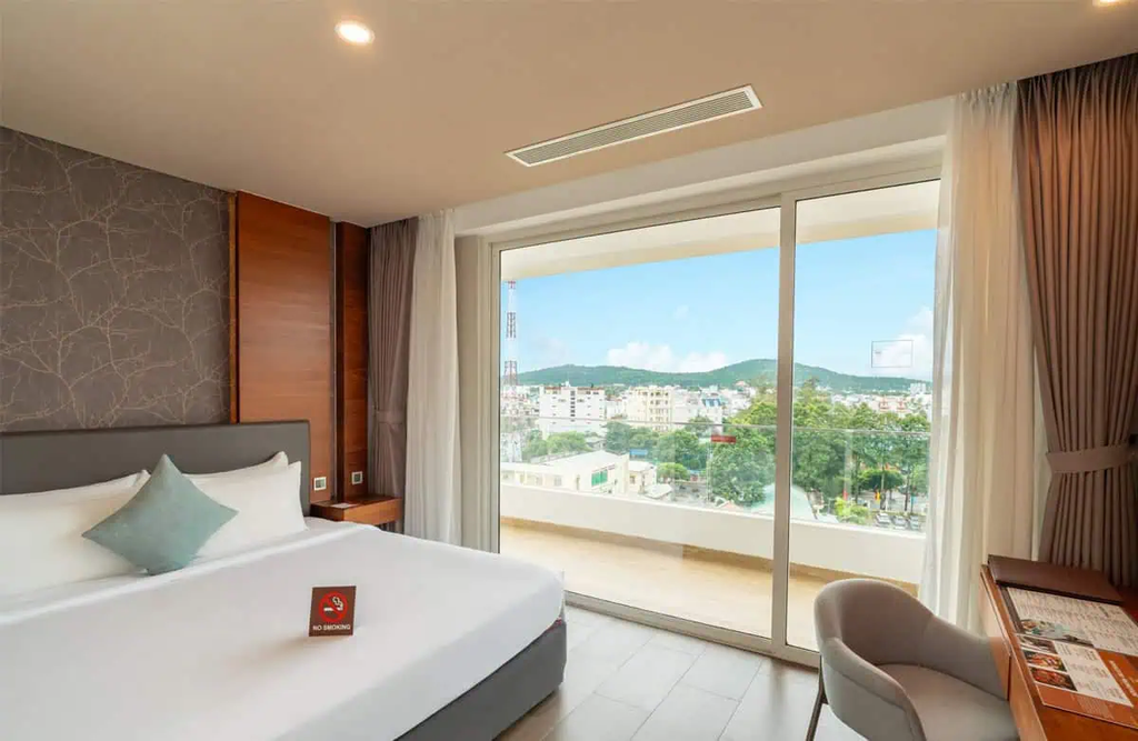 Phòng classic có tầm nhìn hướng phố hoặc hướng biển. Ban công được nối liền với phòng ngủ bằng tấm kính lớn trong suốt khiến căn phòng luôn sáng bừng vào ban ngày.