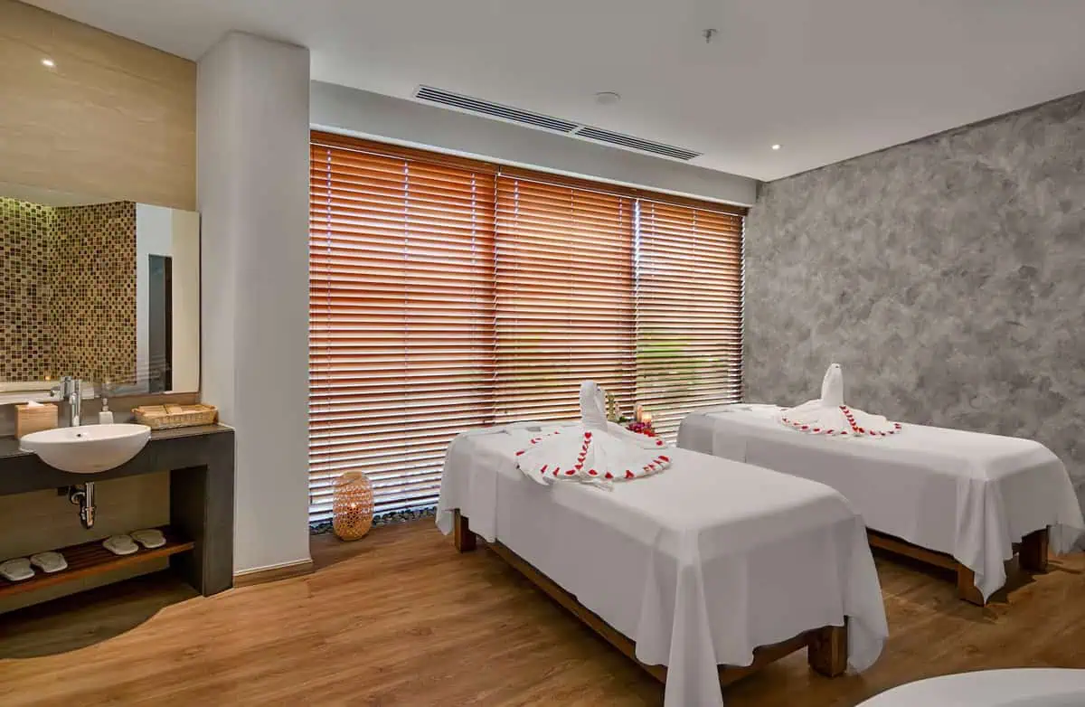 Sau buổi vui chơi năng suất với việc đạp xe, chơi bóng chuyền trên bãi biển, chèo thuyền Kayak, Body & Sol Spa là nơi bạn sẽ được chăm sóc từ A đến Z với liệu trình phù hợp. Mọi người có thể thử liệu trình thải độc theo yêu cầu, trị liệu và massage toàn thân.