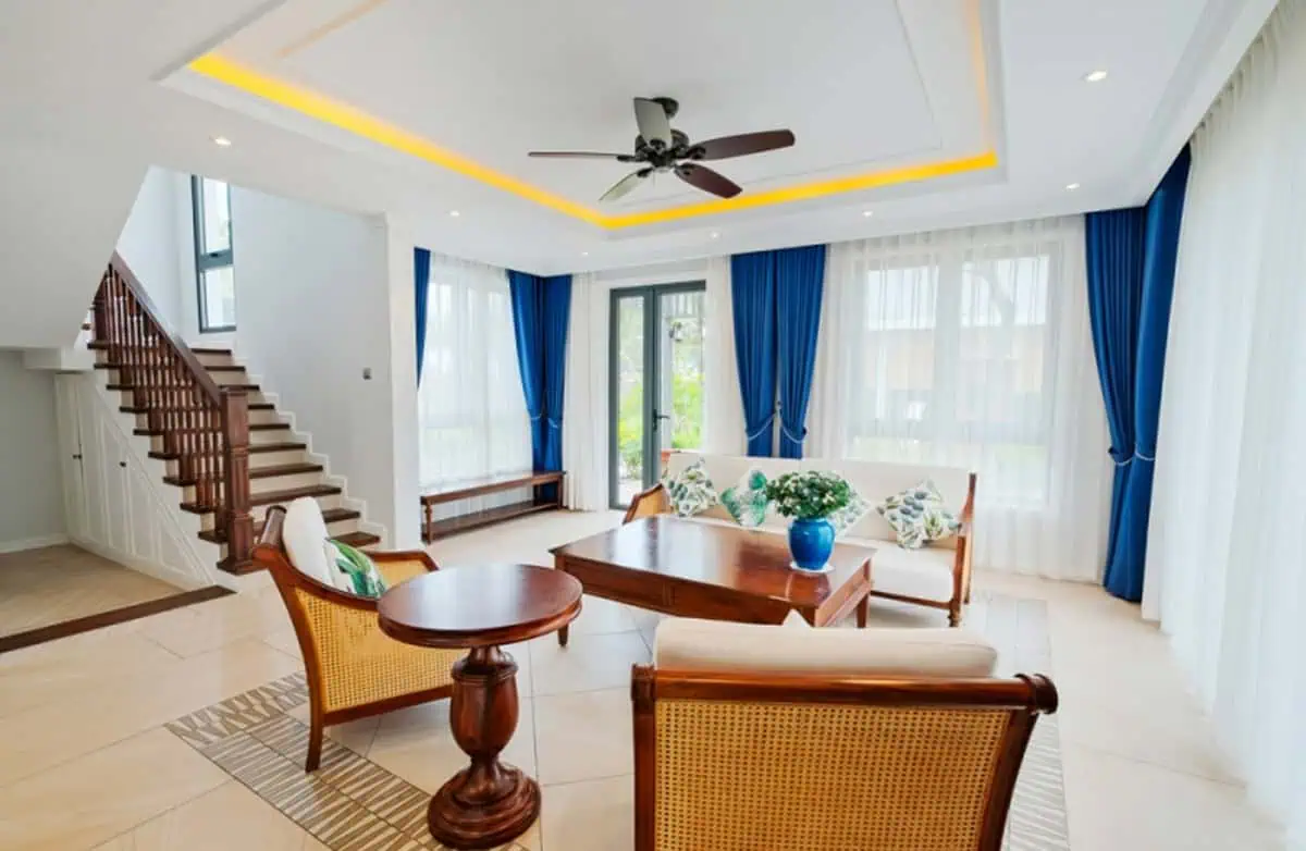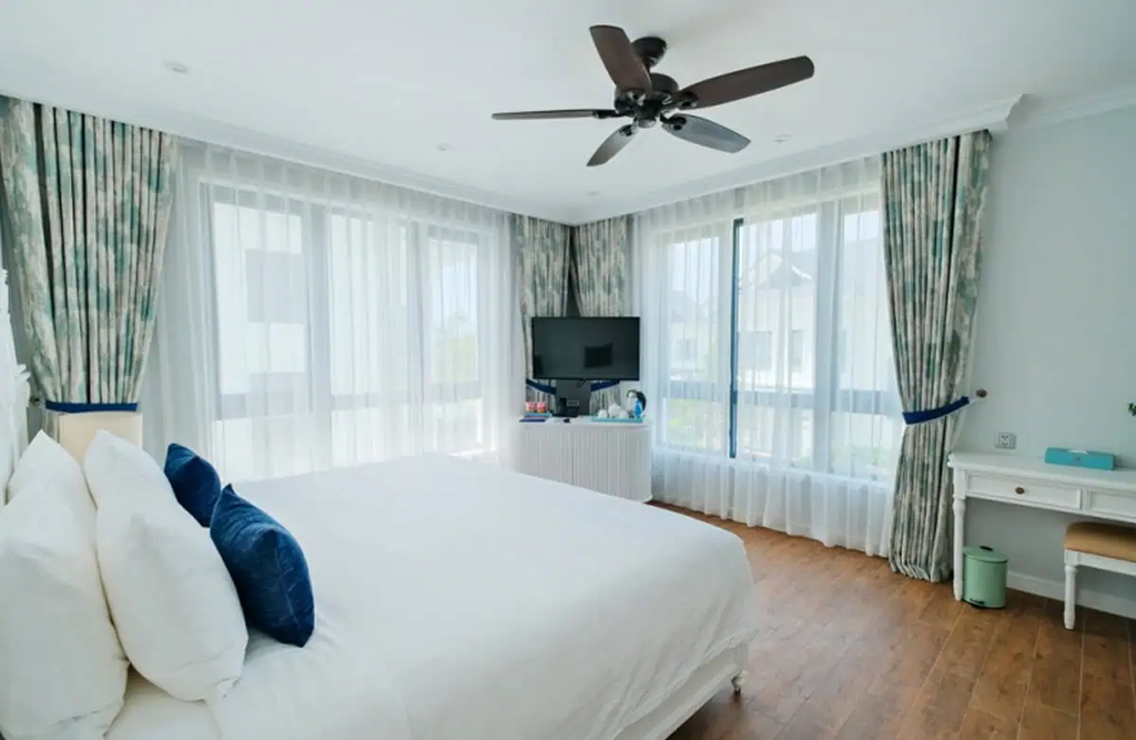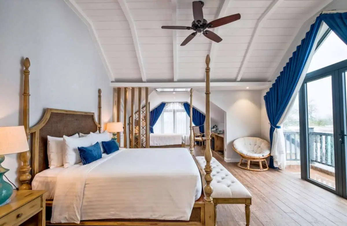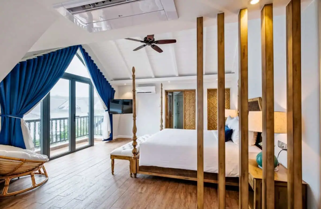 Đây là hạng phòng đẳng cấp nhất của khu nghỉ dưỡng với cấu trúc 3 tầng. 2 tầng dưới thì tương tự căn villa 4 phòng ngủ, riêng tầng trên cùng được xây dựng theo kiểu gác mái. Ban công rộng rãi có thể thấy toàn cảnh xung quanh biệt thự và đón những tia nắng đầu tiên.
