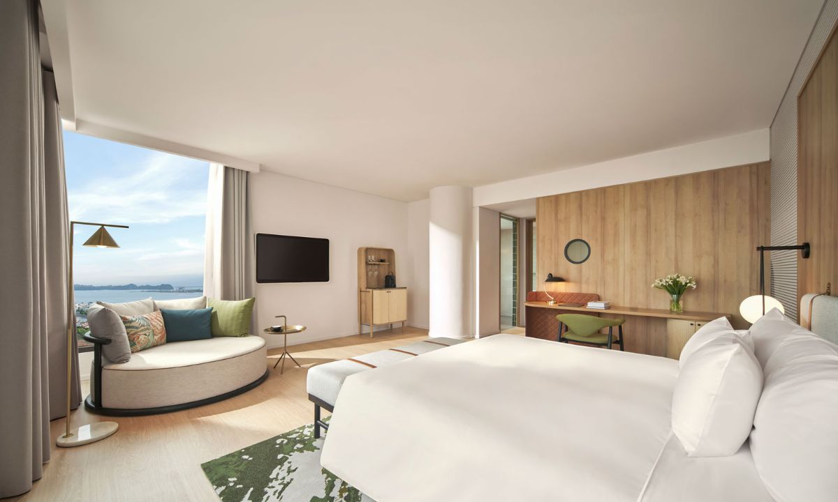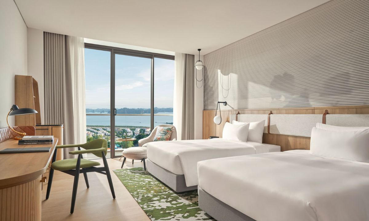 Phòng Deluxe mang phong cách sang trọng, ánh sáng tự nhiên ngập tràn qua mặt kính lớn. Với tầm nhìn đồi Hậu Cần hoặc thành phố Hạ Long, cùng nội thất ấm cúng, giường ngủ và phòng tắm hiện đại, đây là lựa chọn hoàn hảo cho những ai tìm kiếm sự thảnh thơi.
