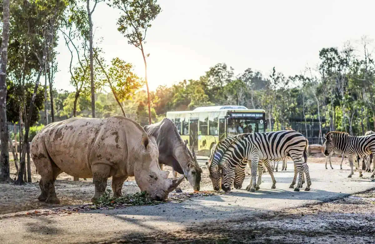 Vinpearl Safari cách khách sạn 4,3km, là công viên bảo tồn động vật bán hoang dã đầu tiên tại Việt Nam, là ngôi nhà của hơn 3.000 cá thể động vật thuộc 150 loài khác nhau. Du khách sẽ được đến gần hơn với thế giới tự nhiên qua hình thức tham quan độc đáo “nhốt người, thả thú,” mang lại những khoảnh khắc gần gũi và sống động với các loài động vật quý hiếm như sư tử, hươu cao cổ, tê giác.