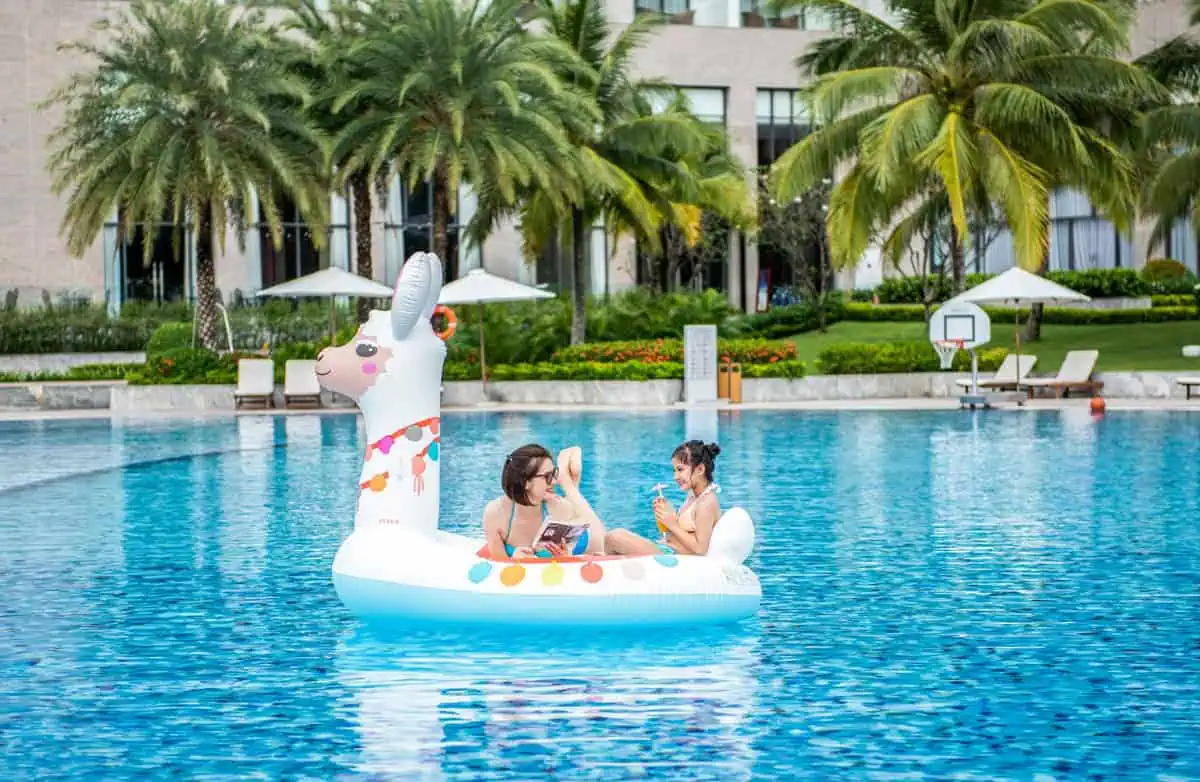 Bên cạnh việc chăm sóc sắc đẹp, thả lỏng cơ thể, du khách có thể bơi lội tại hồ bơi ngoài trời rộng lớn với hồ nước trong vắt và tầm nhìn ra biển.